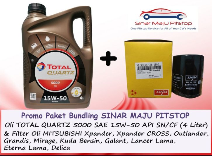 Paket Oli TOTAL QUARTZ 5000 SAE 15W-50 API SN/CF 4 L & Filter MITSUBISHI MIRAGE & GALANT & ETERNA LAMA & LANCER LAMA