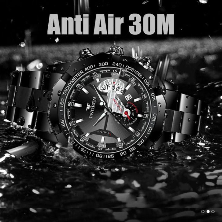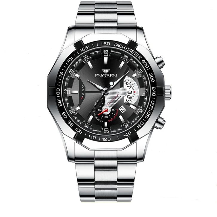 Jam Tangan Pria FNGEEN - Anti Air - Keren - Fashion Watch Quartz - Bisnis Kalender Stainless Steel