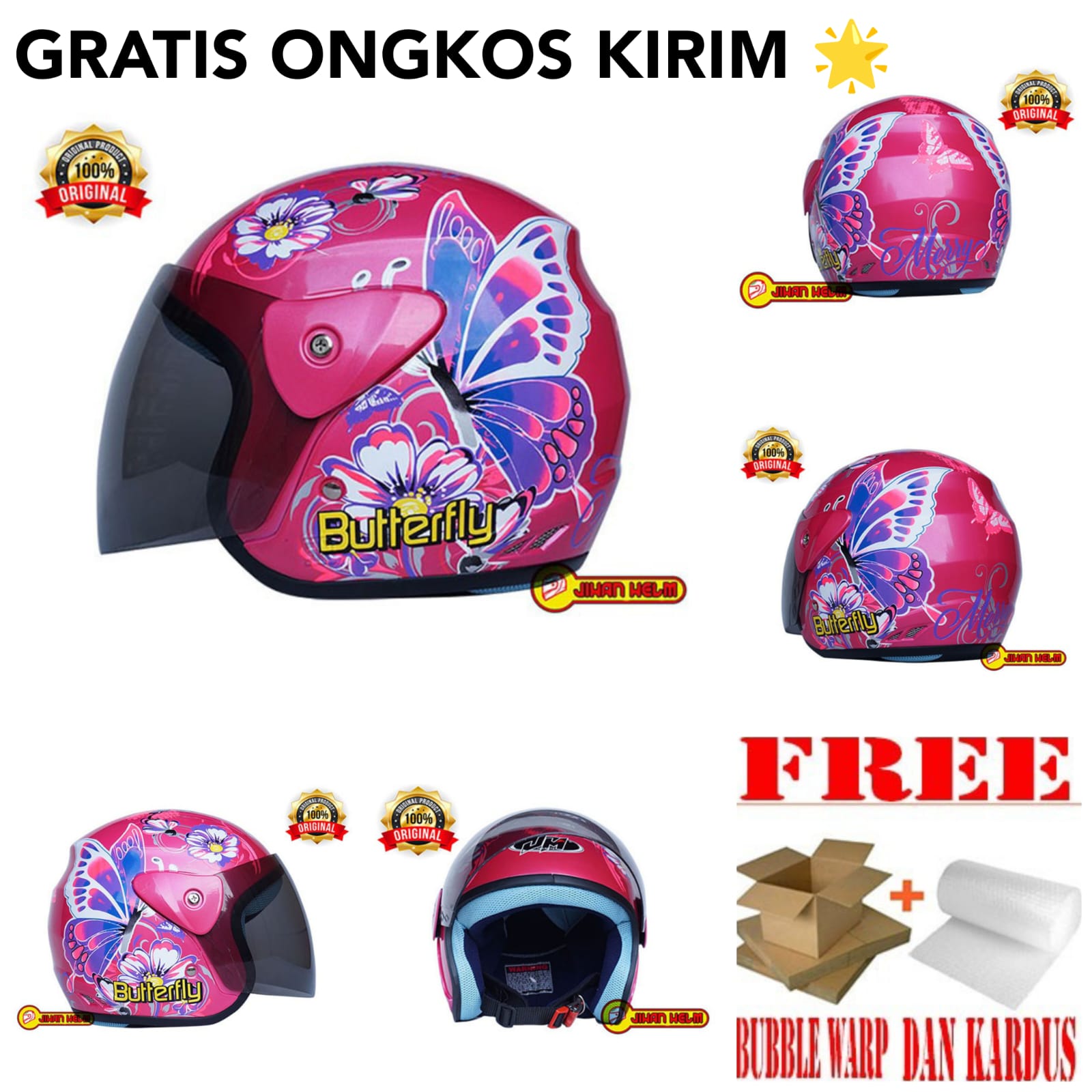 HELM CEWEK SNI / HELM JM WANITA BUTTERFLY PINK ORIGINAL SNI TERMURAH