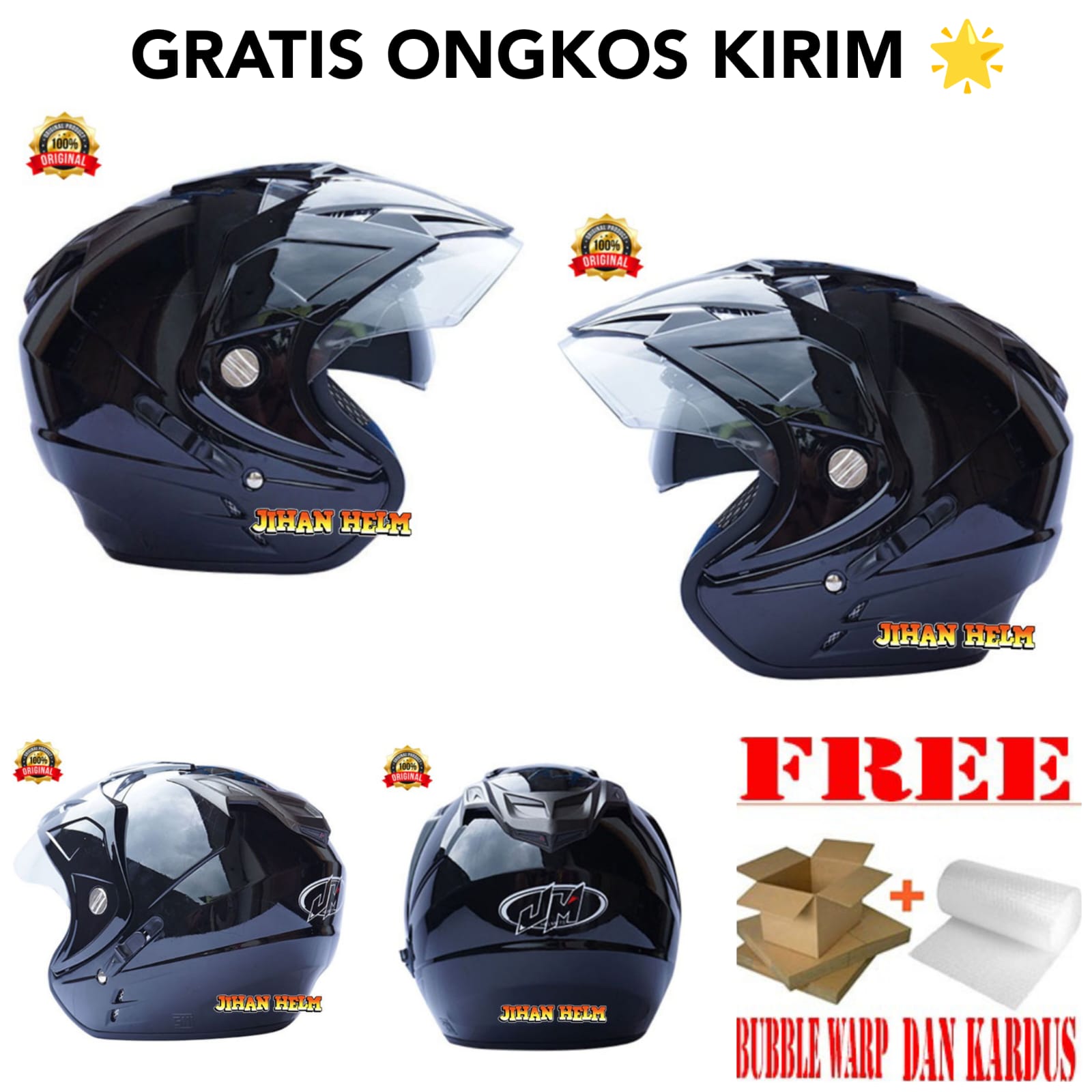 HELM MOTOR DEWASA ORIGINAL SNI / HELM JM DOUBLE VISIOR BLACK METALIC ORIGINAL SNI TERMURAH