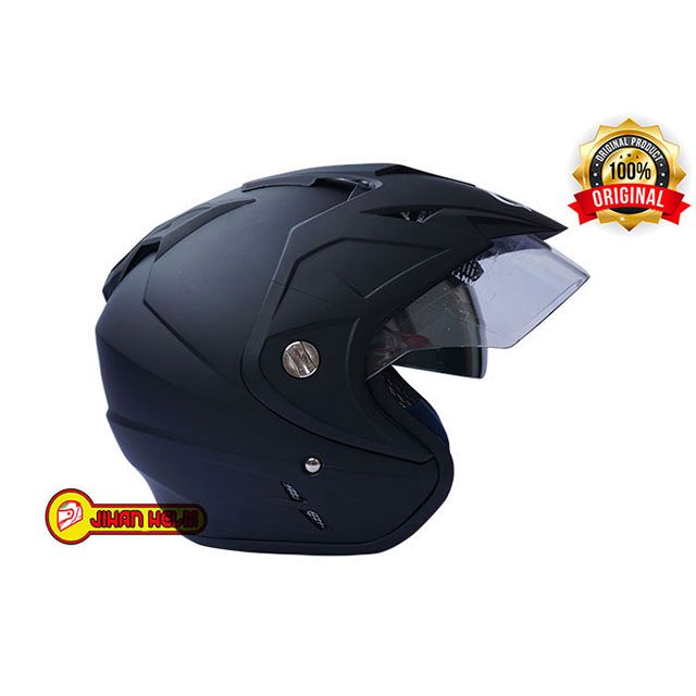 Helm double visor half face / helm dewasa jp7 black doff original sni terlaris