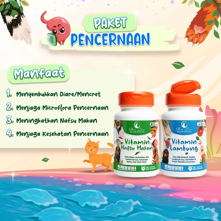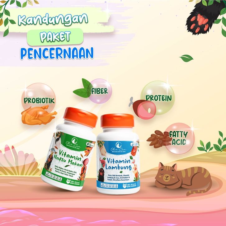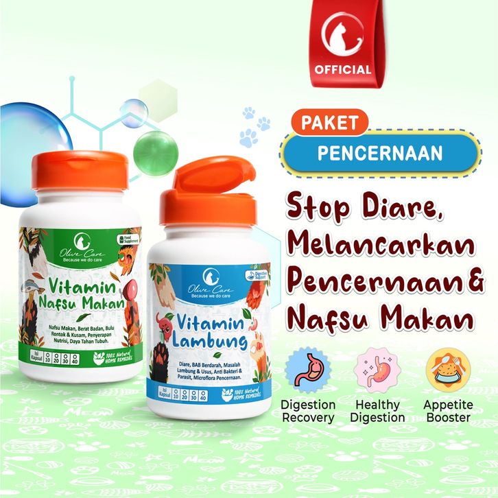 Olive Care Vitamin Kucing Paket MASALAH PENCERNAAN & SUSAH MAKAN untuk Tidak Nafsu Makan, Lemes akibat Diare