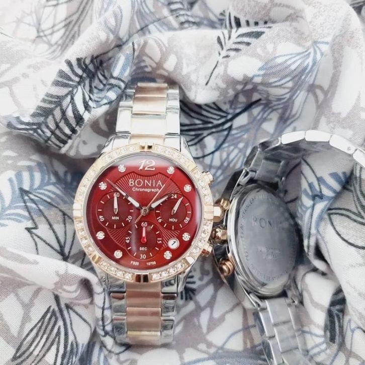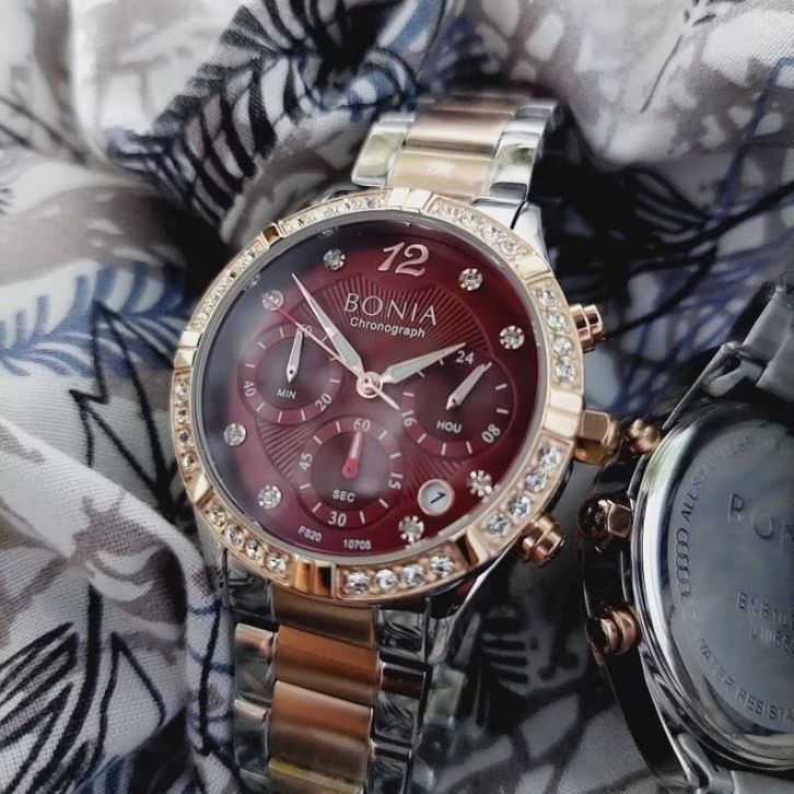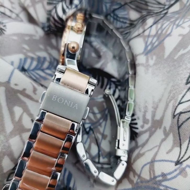 JAM TANGAN WANITA BONIA BNB10705 SILVER COMBI BROWN STAINLESS STEEL- FREE ONGKIR - FREE BOX ORIGINAL