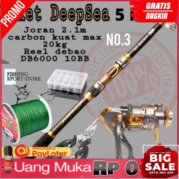 Set Joran Pancing Laut Kekuatan 20kg Joran Pancing 210cm Reel DB6000 TERLARIS