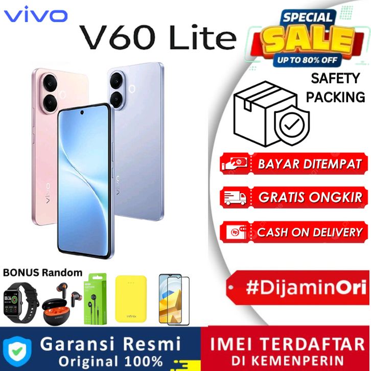 [Official Store✔] Vivo V60 Lite 4G 256GB 128GB 16GB 50MP Sony Camera, 6500 mAh + 90W FlashCharge, Bypass Charging