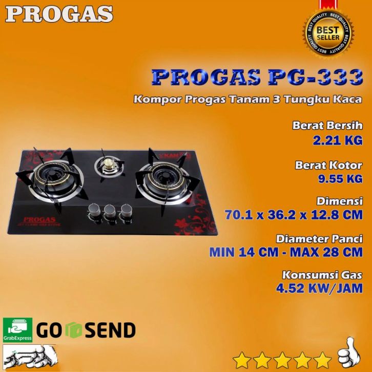 FREE ONGKIR Kompor Gas Tanam 3 Tungku ApiApi Kaca PROGAS