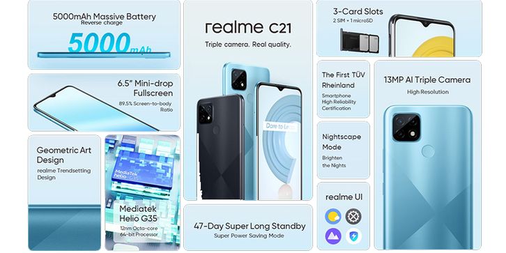 Realme C21 (4+2/64GB) 5000mAh | ORI | Garansi