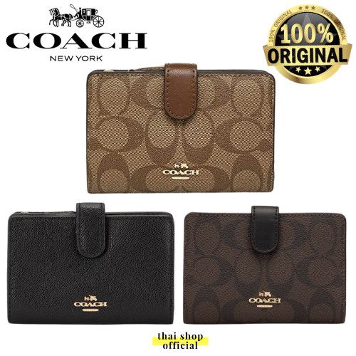 Tas Wanita COACH Medium Wallet Bifold Compact Signature Mahogany