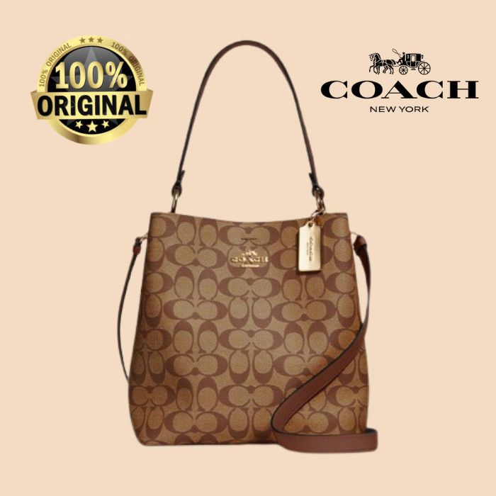 Tas Wanita COACH Town Bucket Bag In Signature Canvas Khaki