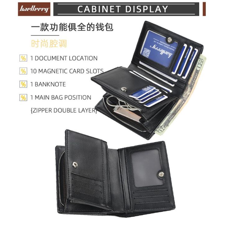 DOMPET - DOMPET COWOK -DOMPET PRIA KULIT IMPORT HITAM LIPAT KECIL BERDIRI PENDEK BAELLERRY ORI MURAH ASLI VIRGIL WA058B5