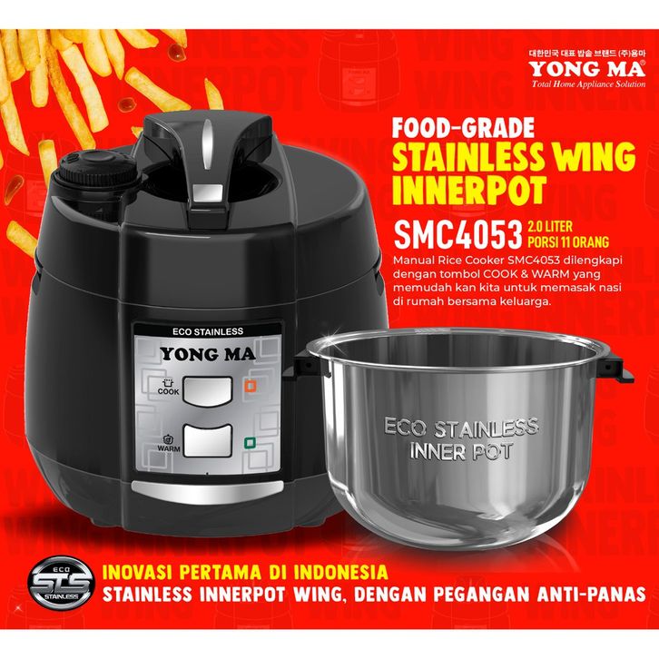 YONG MA / YONGMA RICE COOKER / MAGIC COM SMC 4053 STAINLESS (2 LITER)