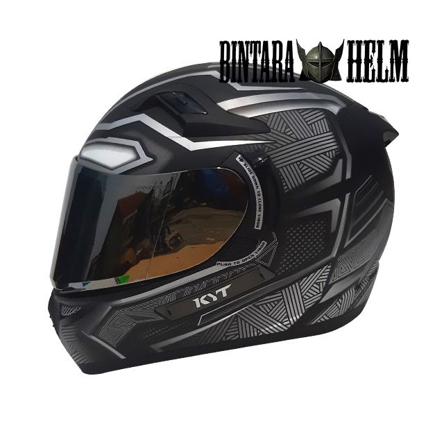 HELM KYT K2 RIDER MOTIF BLACK PANTHER BLACK DOFF SILVER FLAT VISOR IRADIUM ORIGINAL HELM FULL FACE DOUBLE VISOR
