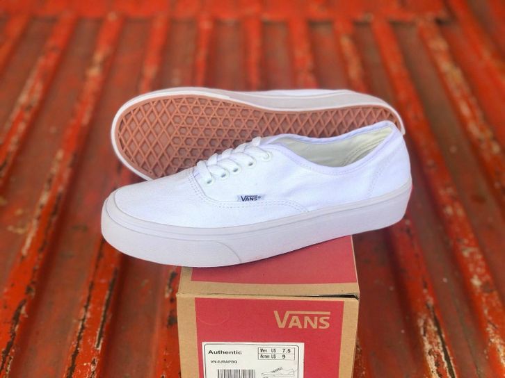 SEPATU PRIA & WANITA SNEAKERS VANS AUTHENTIC FULL WHITE PREMIUM ORI BNIB BONUS KAOS KAKI