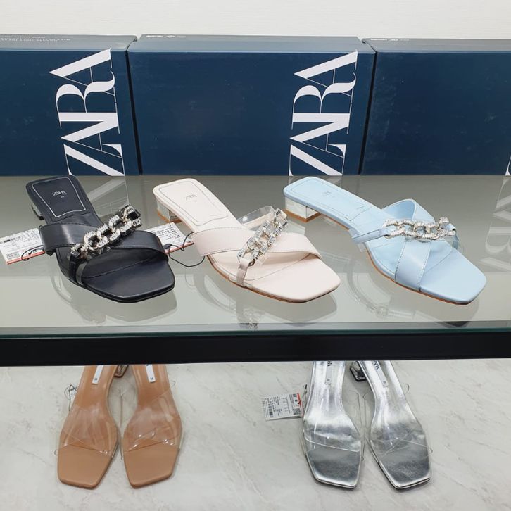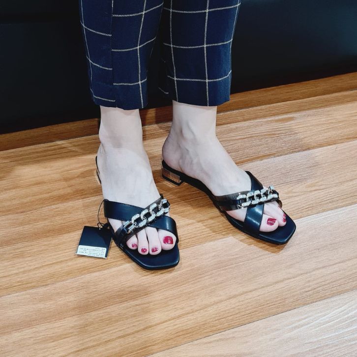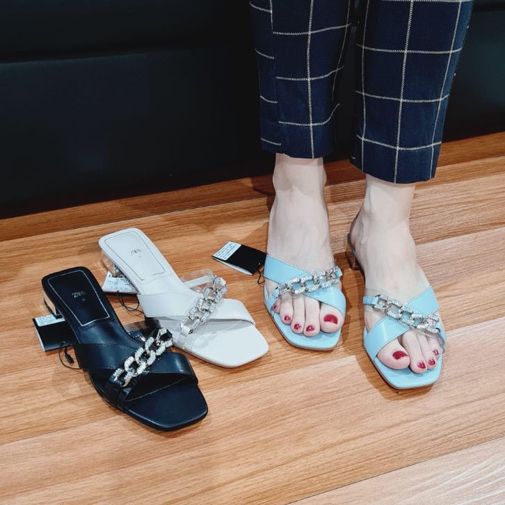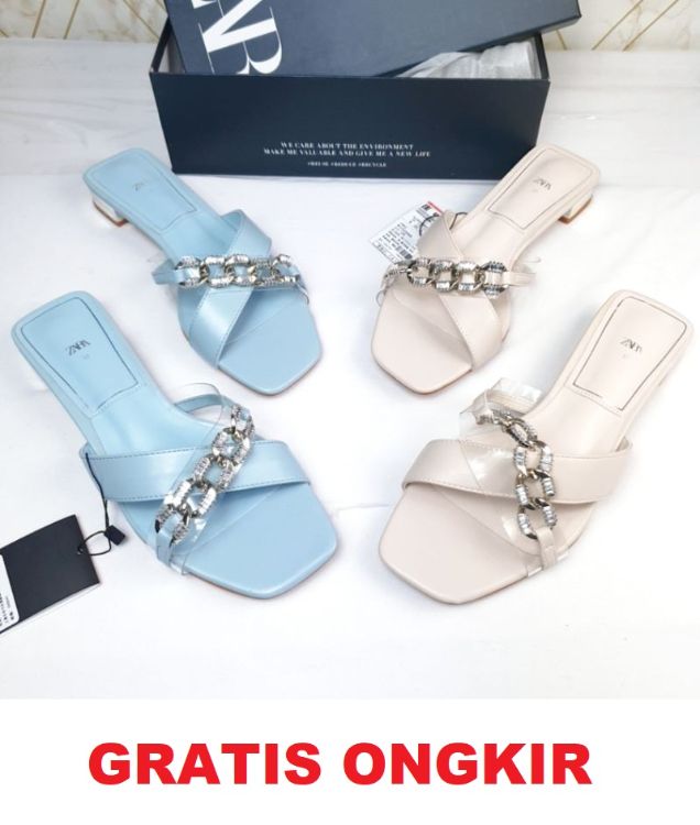 Sendal Zara Cross Strap Flat Sandal with Vinyl and Chain