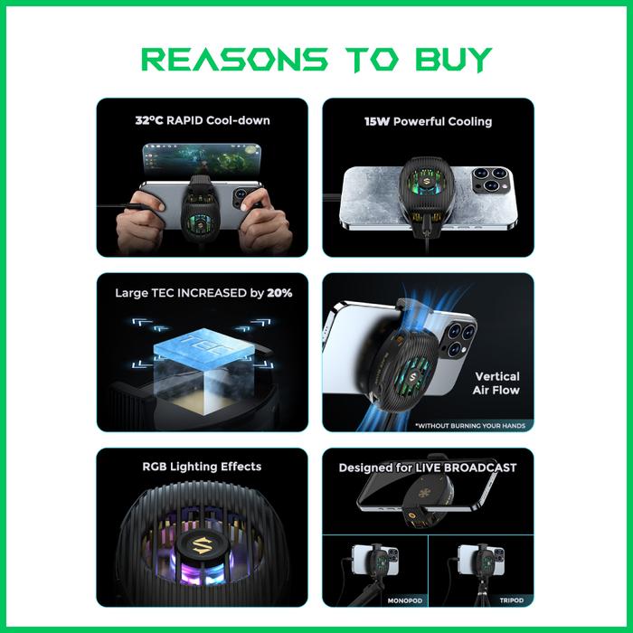Black Shark Fun Cooler 4 | 32'C Rapid Cool-down | Vertical Air Flow | Designed for Live Broadcast | 1 Year Warranty