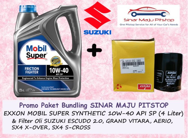 Paket Bundling Oli MOBIL SUPER SAE 10W-40 API SP Original 4 Liter & Filter Mobil SUZUKI ESCUDO 2.0 & SUZUKI AERIO