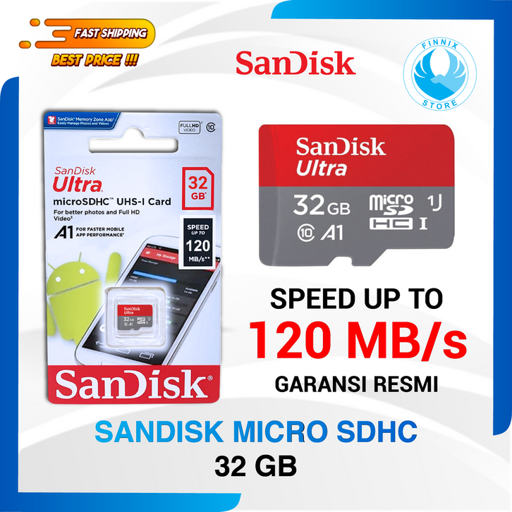 SanDisk 32GB A1 Ultra MicroSDHC Up To 120MB/s Class 10 Memory Micro SD