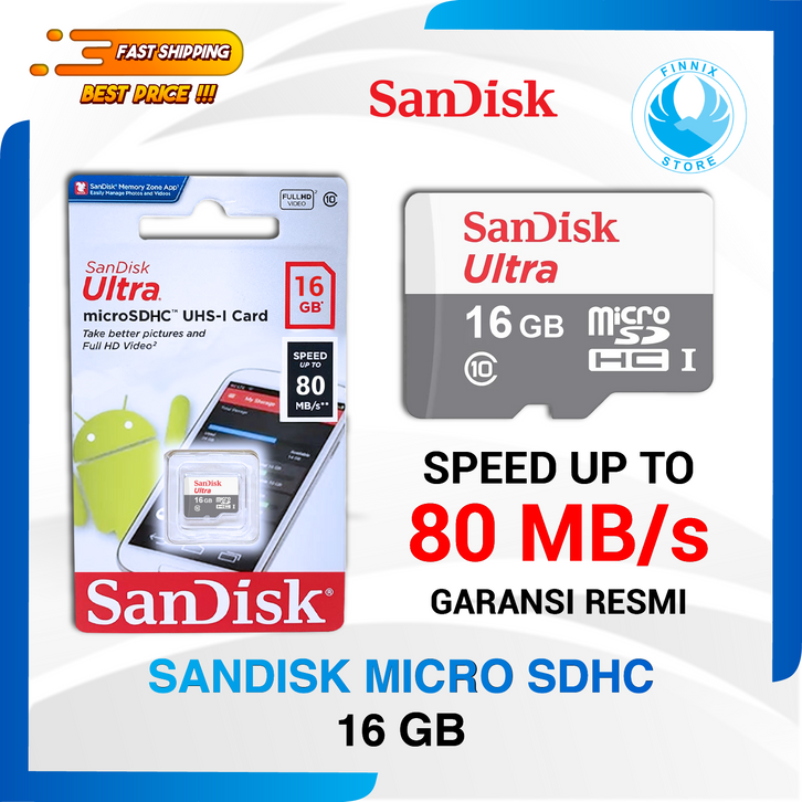 SanDisk 16GB Ultra MicroSDHC Speed Up To 80MB/s Class 10