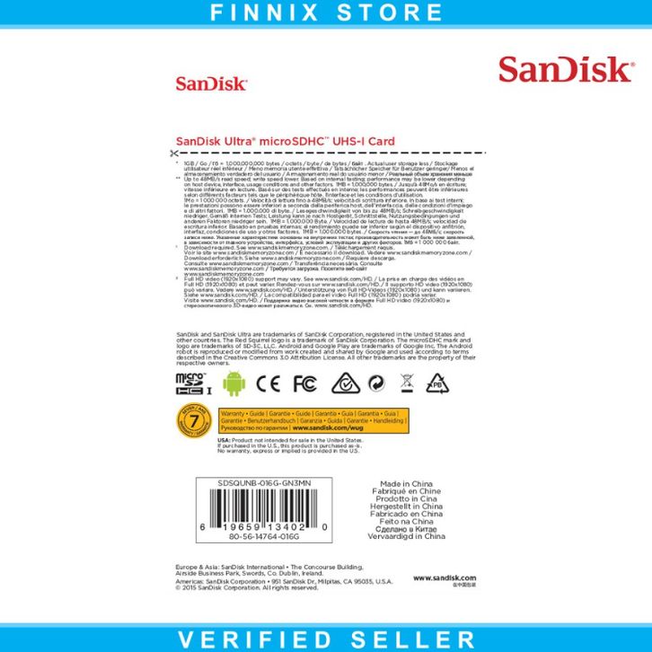 SanDisk 32GB Ultra MicroSDHC Speed Up To 100MB/s Class 10