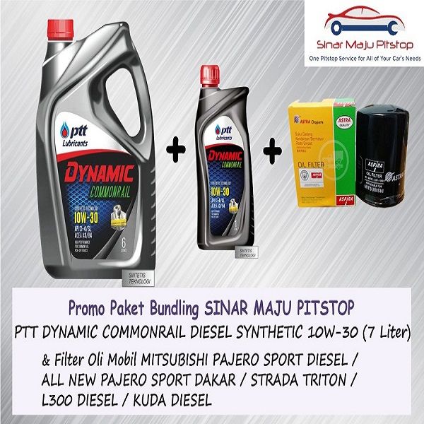 Paket Oli 7 Liter PTT LUBRICANTS DYNAMIC 10W-30 API CI-4/SL & Filter MITSUBISHI STRADA TRITON DIESEL & STRADA DIESEL