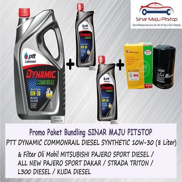 Paket Oli 8 Liter PTT LUBRICANTS DYNAMIC COMMONRAIL 10W-30 API CI-4/SL & Filter MITSUBISHI NEW PAJERO SPORT DIESEL
