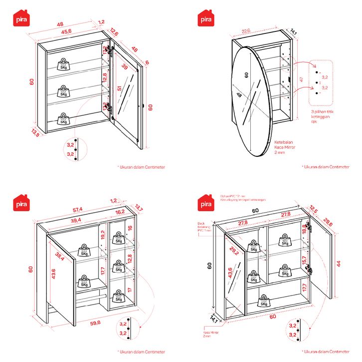 PIRA - EVIER BTC40 OV Rak Cermin Wastafel