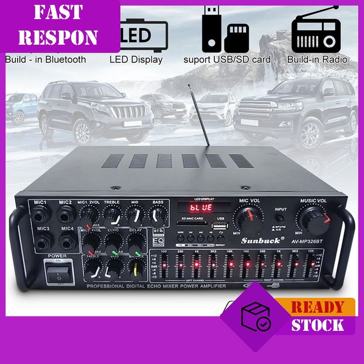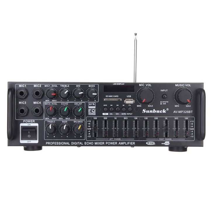 Sunbuck Bluetooth EQ Audio Amplifier Karaoke Home Theater FM Radio 2000W - AV-326BT - Black