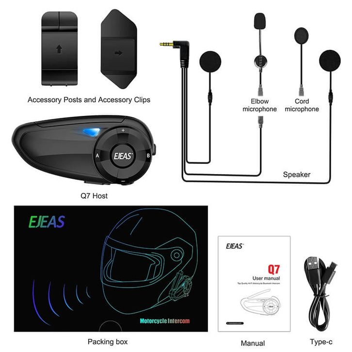 EJEAS Q7 Bluetooth Radio FM Intercom Helm 7 Rider Helmet Alt V6 PRO
