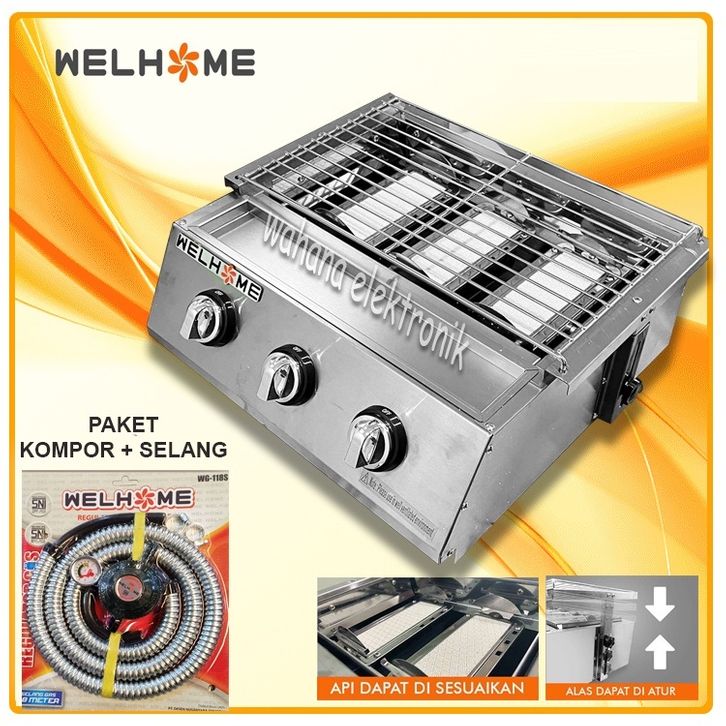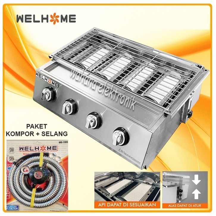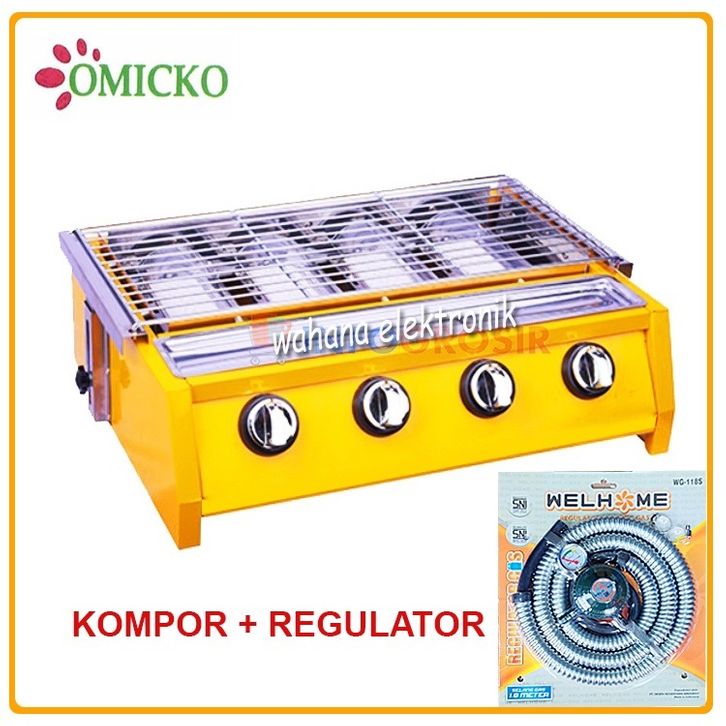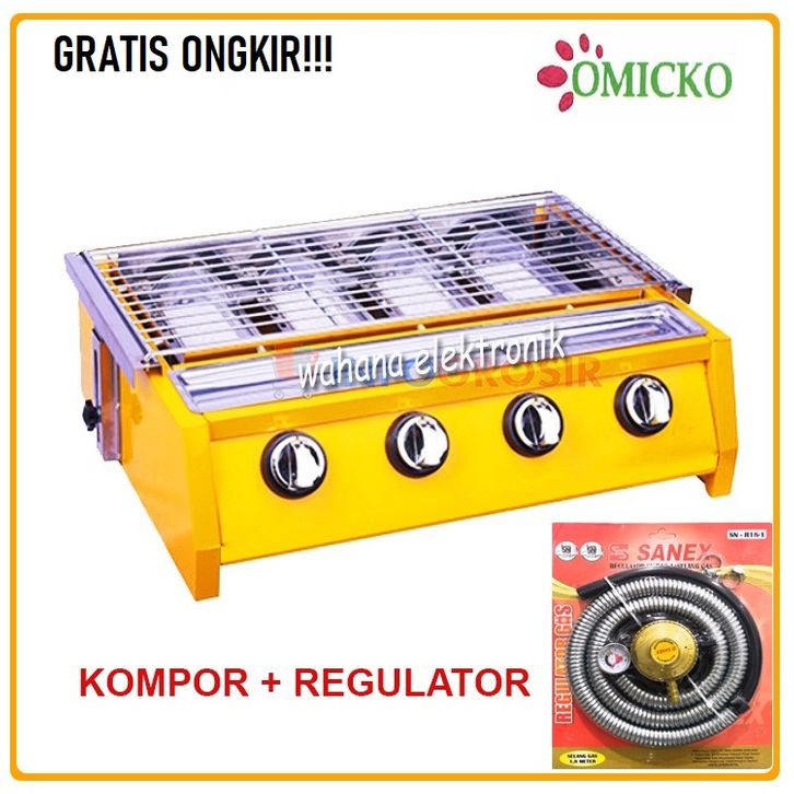 Kompor Sosis Bakar Sate Bakar 4 Tungku/BBQ GRILL Paket Regulator Gas Kompor Panggang Termurah