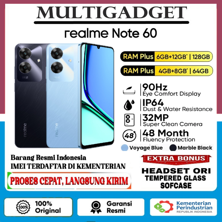REALME NOTE 60 6GB+12GB*|128GB GARANSI RESMI | Realme Note 60 4GB+8GB*|64GB 32MP Camera, IP64 Dust & Water Resistance