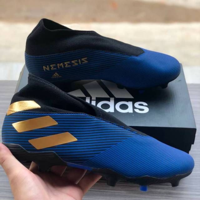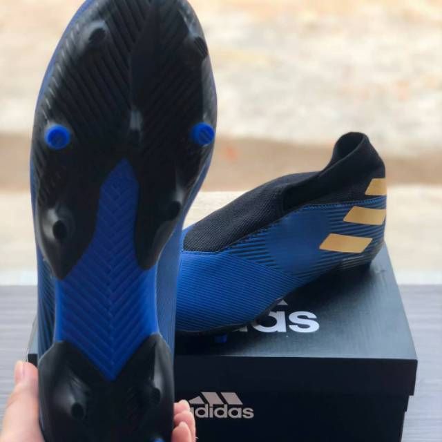Sepatu Bola Adidas Nemeziz 19.3 Laceless Blue Gold Black