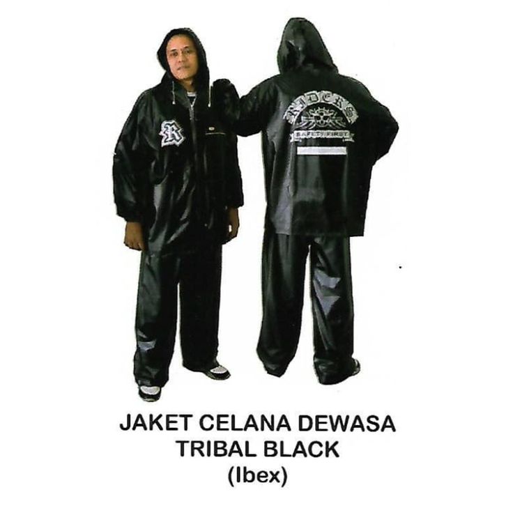 Jas Hujan Setelan Tribal Biru - Silver - Hitam Ibex