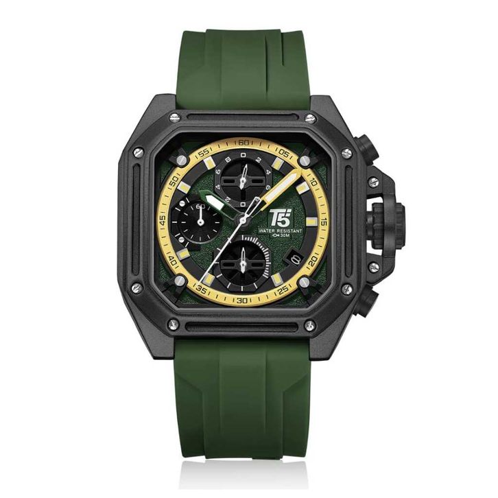 Jam Tangan Pria T5 H 4101 GREEN STRAP SILICONE Original Chronograph Bergaransi-Free tin box