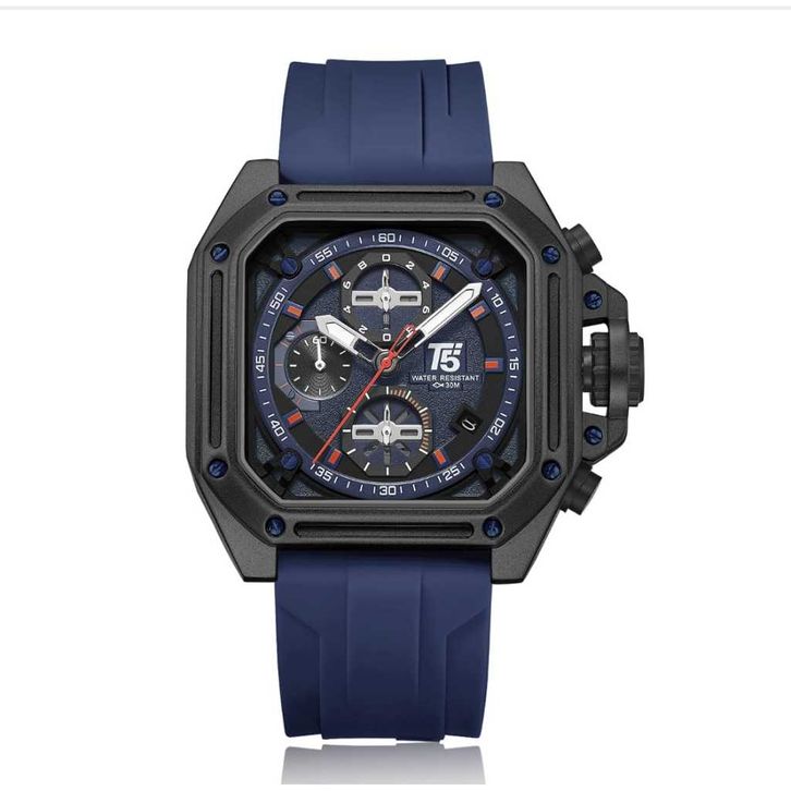 Jam Tangan Pria T5 H 4101 NAVY STRAP SILICONE Original Chronograph Bergaransi-Free tin box