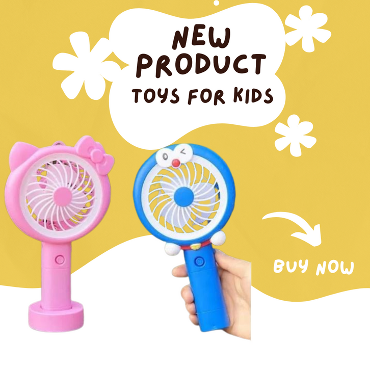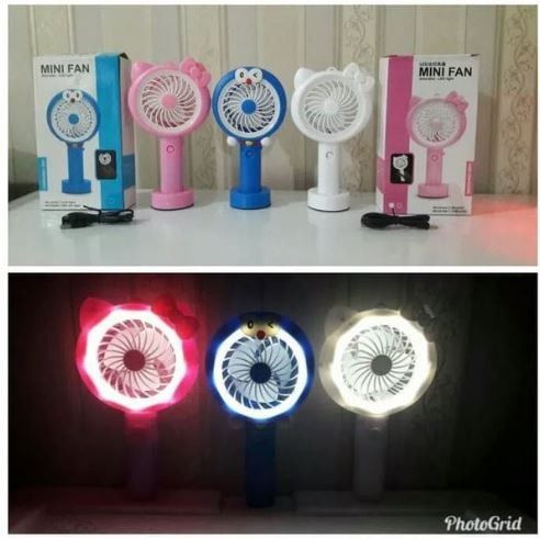 Kipas Angin Tangan Stand Portable Karakter + Lampu Led / Mini Fan Led