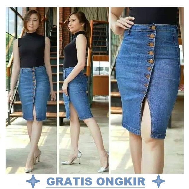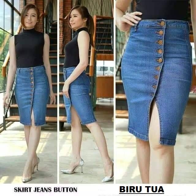 Rok Jeans Span Kancing / Rok Jeans Wanita - Ry 320 214