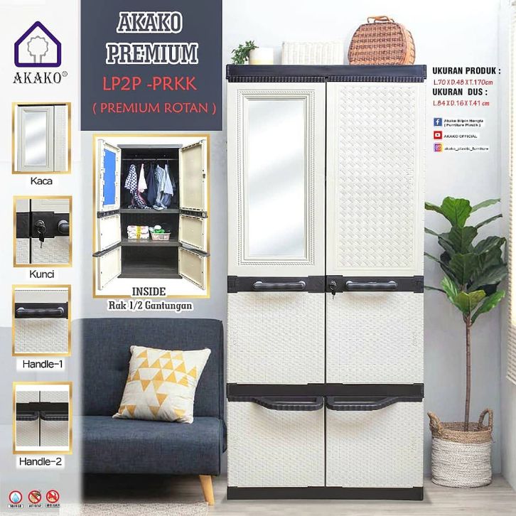 FREE ONGKIR LEMARI PLASTIK 2 PINTU PREMIUM CERMIN