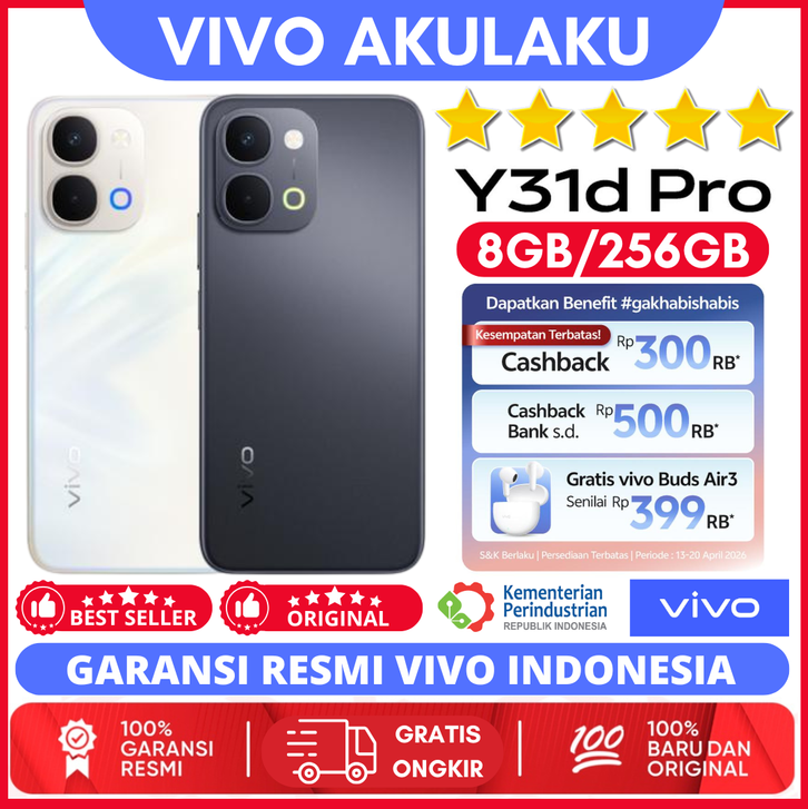 (VIVO Sale) Vivo Y31d Pro - Desain Satin 3D, 7000mAh Baterai Non-Stop & 90W FlashCharge, IP68/69/69+ Tahan Air & Banting