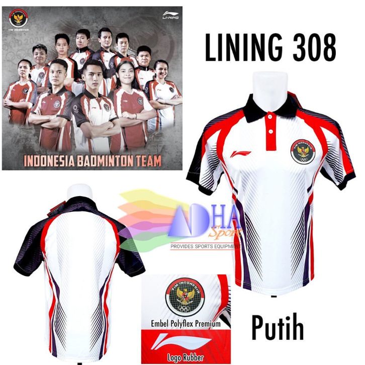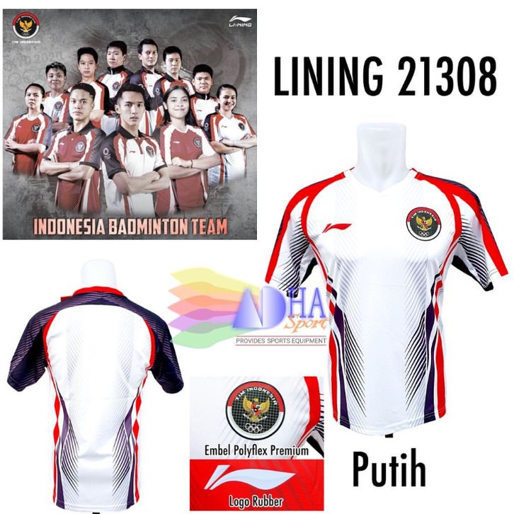 Kaos Badminton Lining 21308 / L21308/ 308 / L308 Putih Kualitas import grade ori (Adha Sport)
