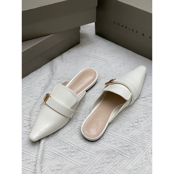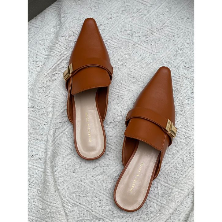 Sepatu Sandal Charles and Keith SEPATU WANITA CKS438 CK METALLIC ACCENT MULE FLATS PREMIUM IMPORT