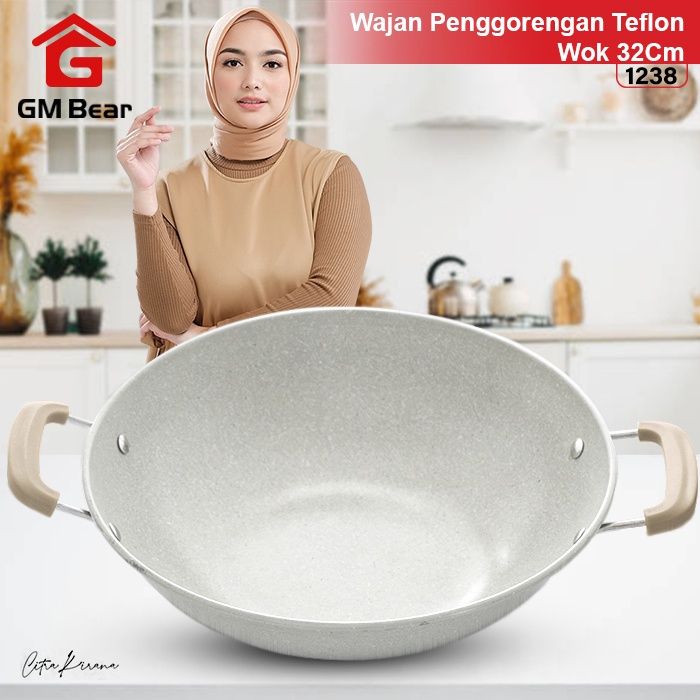 Wajan / Wajan penggorengan / Peralatan masak / Peralatan dapur / GM Bear Wajan Penggorengan Teflon 32cm 1238-Cooking Pan