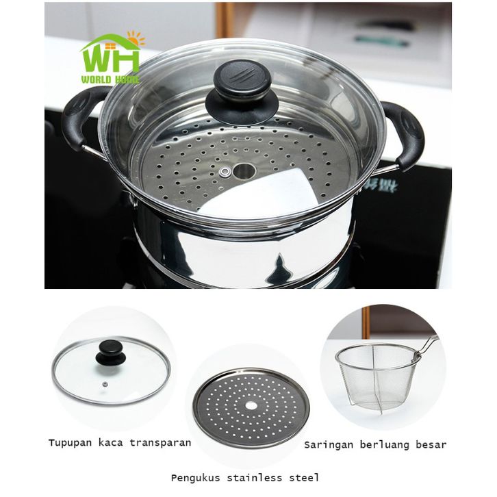(GRATIS ONGKIR) Panci Rebus Bakmi Stainless Steel Deep Fryer Dengan Saringan Mie