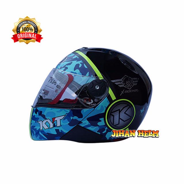 HELM KYT ORIGINAL SNI / HELM FULL FACE KYT X ROCKET #3 BLACL BLUE YELLOW FLOU TERMURAH