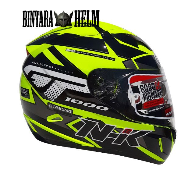 HELM NHK TERLARIS HELM FULL FACE HELM NHK GP 1000 MOTIF YELLOW FLUO SILVER