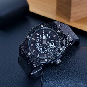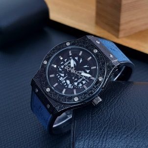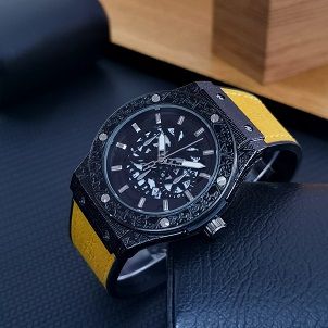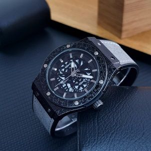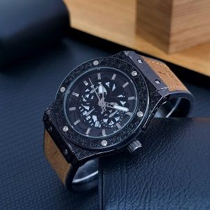 Jam Tangan Pria Hublot / Hublot Cowok Tanggal Aktif Body Hitam HB 966 - Tali Kulit - Jam Tangan Murah