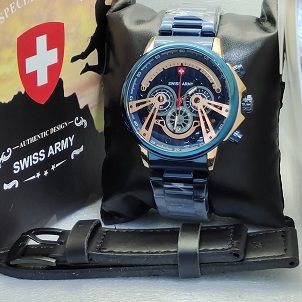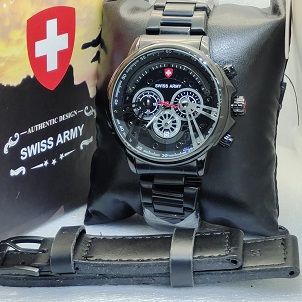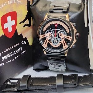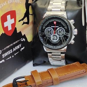 Jam Tangan Pria Swiss Army / Swiss Army Cowok Tanggal Aktif SA 970 - Stainless Steel - Jam Tangan Murah FREE TALI KULIT