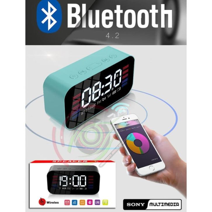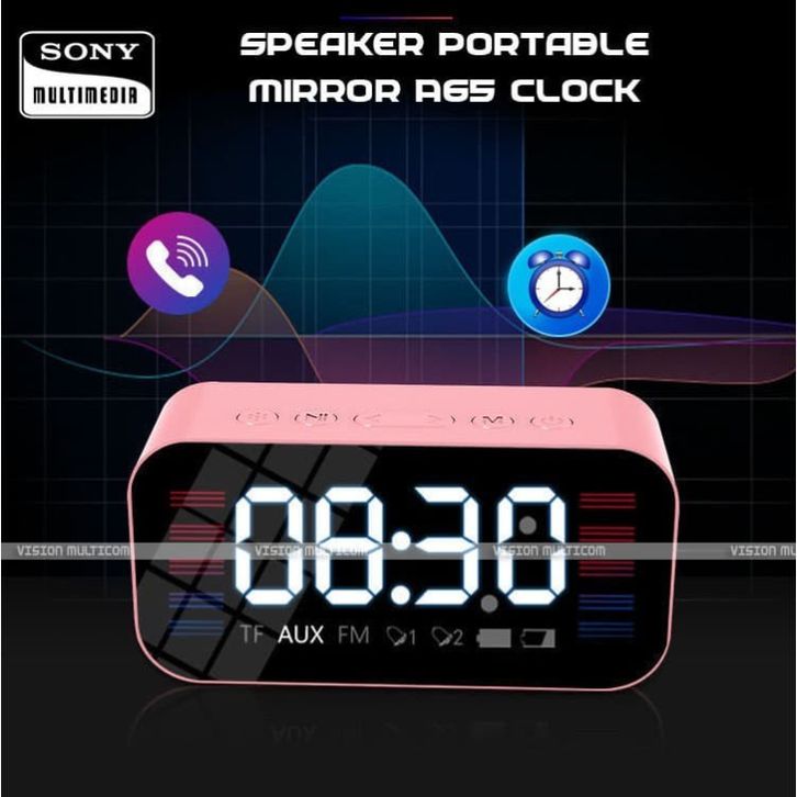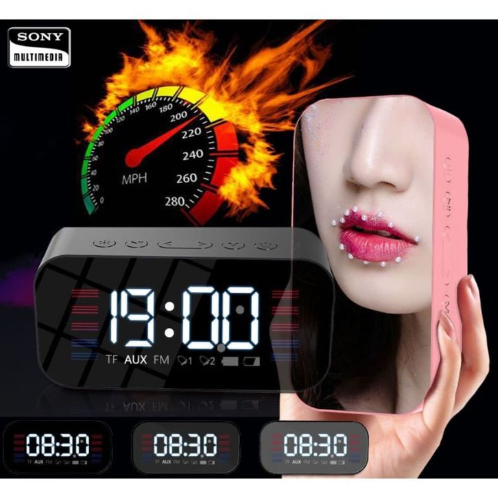 SPEAKER SONY S65 LED Clock Alarm Bluetooth Speaker EQ Stereo Mirror Screen