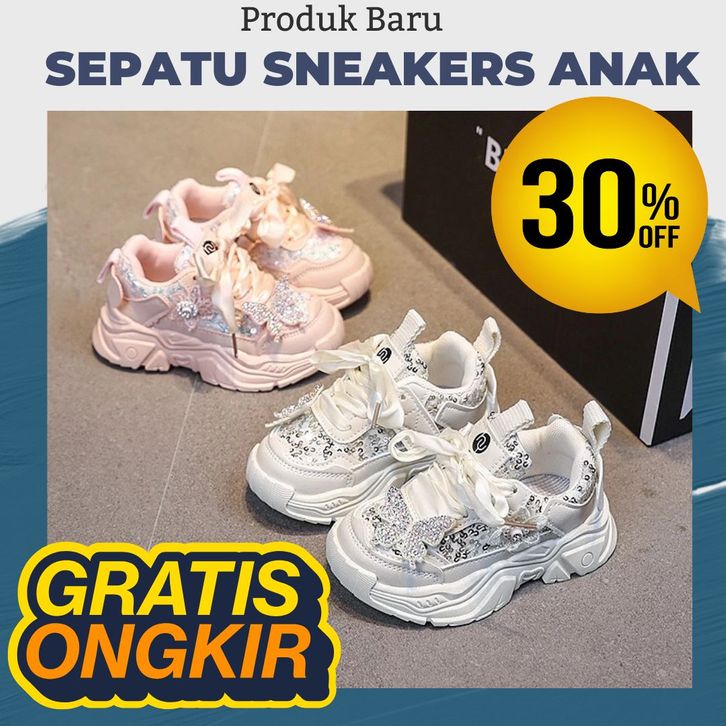 GRATIS ONGKIR Sepatu Sneakers Anak Perempuan Fashion Comfort Butterfly KUPU KUPU Size 21-30 TERBARU 2025 TERLARIS
