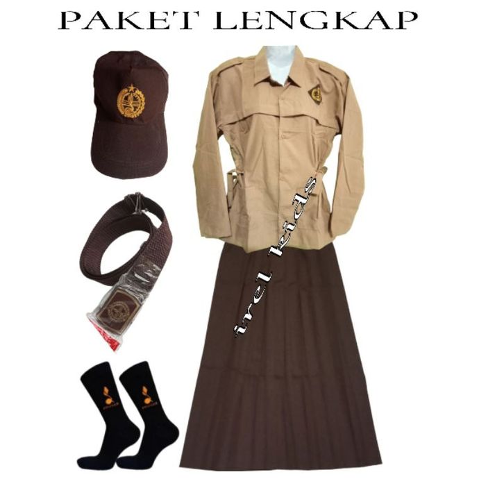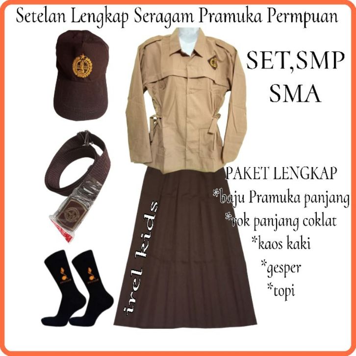 Seragam Sekolah Smp Sma Smk Setelan Pramuka Perempuan Baju Panjang Rok Panjang Super Lengkap
