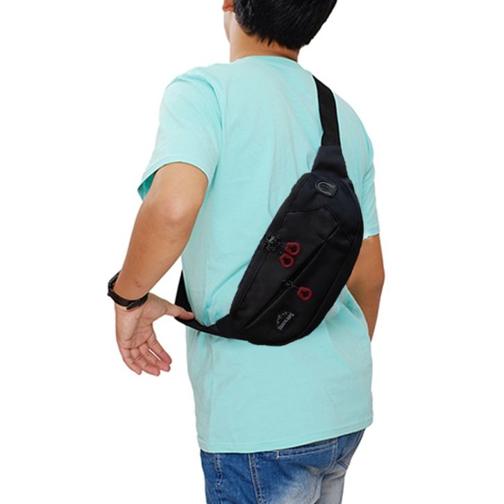 Tas Selempang Waistbag Pria Camera Track GPS Motif Headset Hole Nyaman, Ringan, Kuat Free Ongkir Jabodetabek